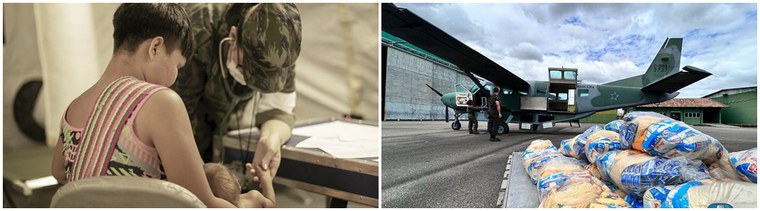 Aeronaves da FAB realizaram mais de 2 mil atendimentos médicos, mais de 160 evacuações aeromédicas, auxiliaram no regresso de 95 indígenas às suas aldeias após alta médica e deslocaram mais de 450 mil quilos de insumos. Foram 20 mil cestas já entregues, e previsão de mais de 12 mil ao longo dos próximos meses"