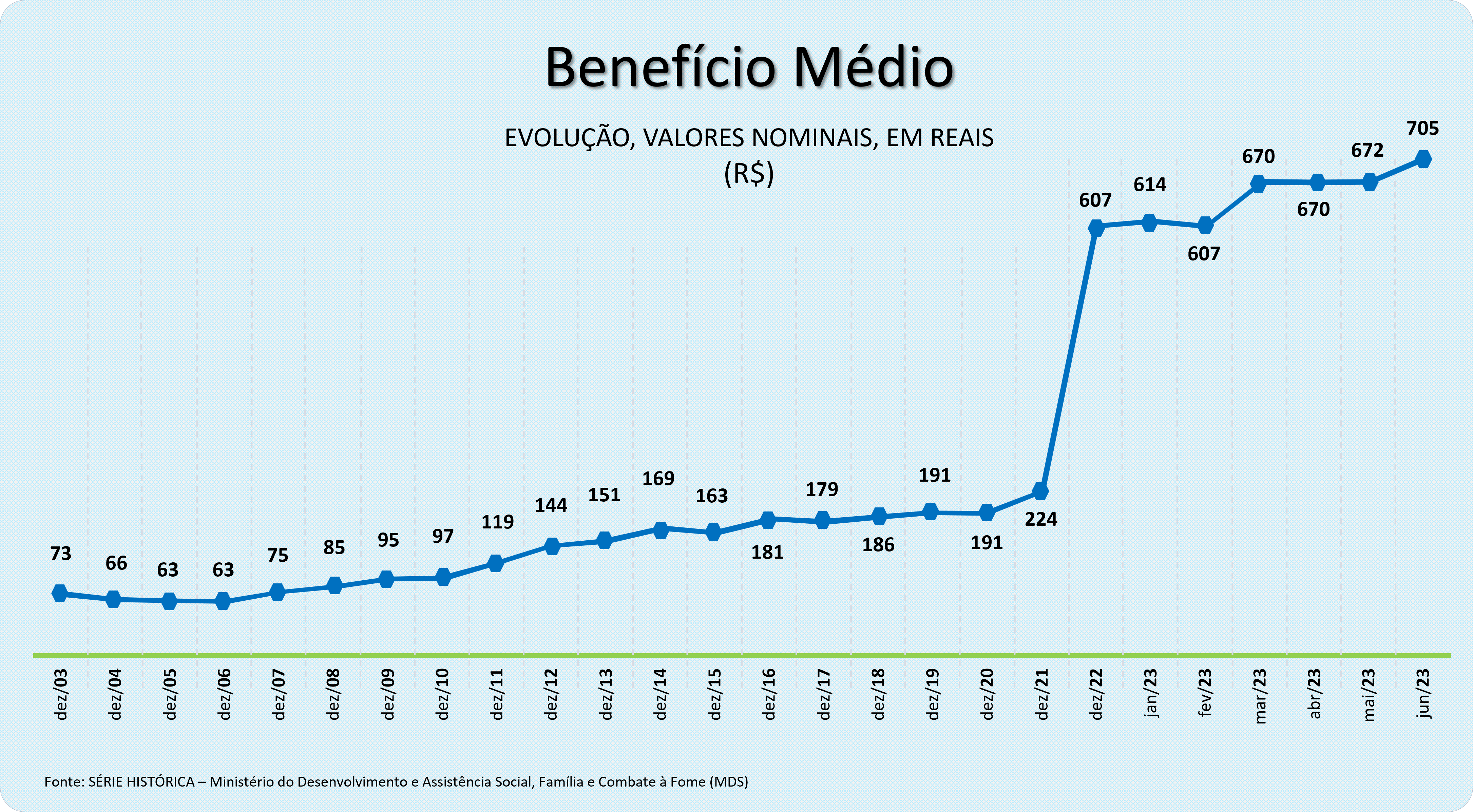 Infográfico 1 | Evolução do Benefício Médio, em valores nominais | Fonte: MDS