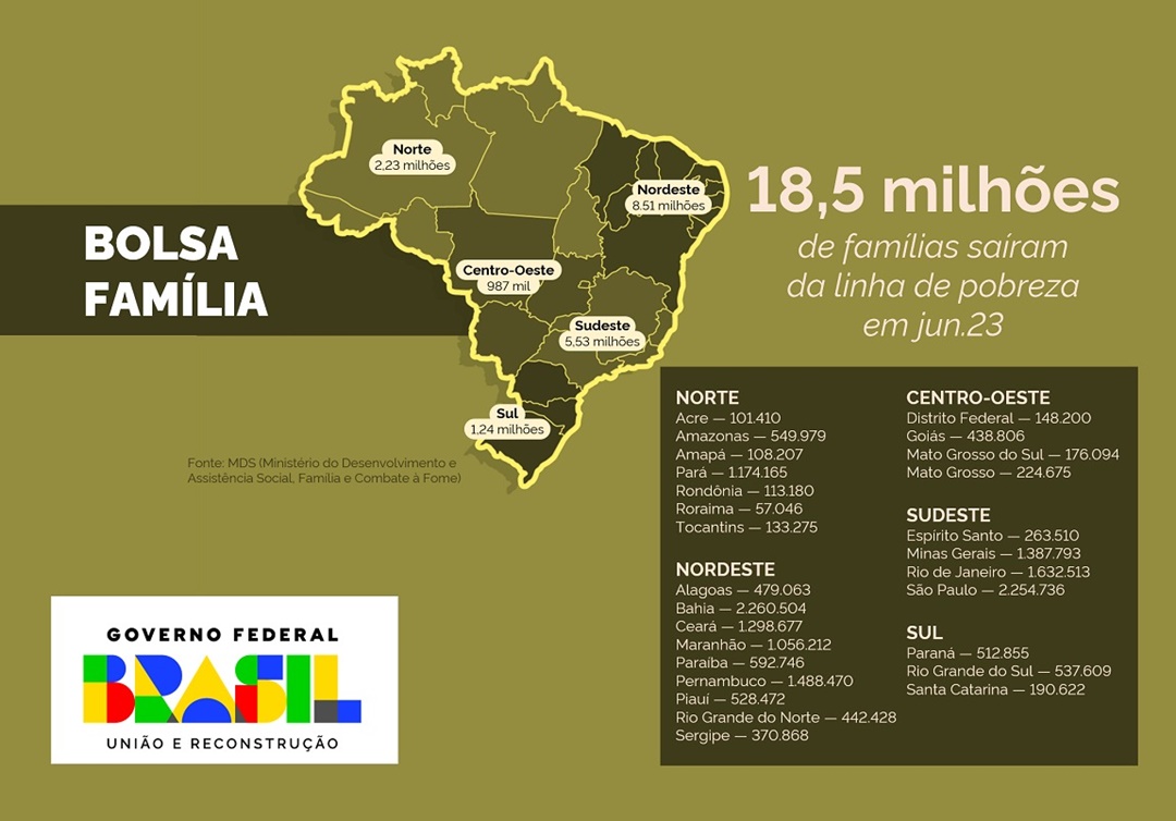 “O objetivo é tirar novamente o Brasil do mapa da fome e da insegurança alimentar, mas também reduzir a pobreza. Somente agora, no novo Bolsa Família, nós já comemoramos 18,5 milhões de famílias, 43,5 milhões de pessoas que elevaram a renda este ano e que estão fora da pobreza”, destacou o ministro Wellington Dias.