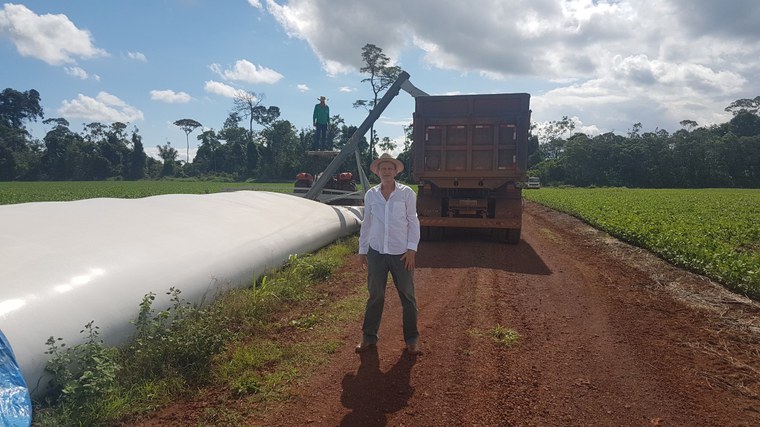 | Izidoro acompanha o carregamento do caminhão em sua propriedade: "Melhores estradas, menor preço" |