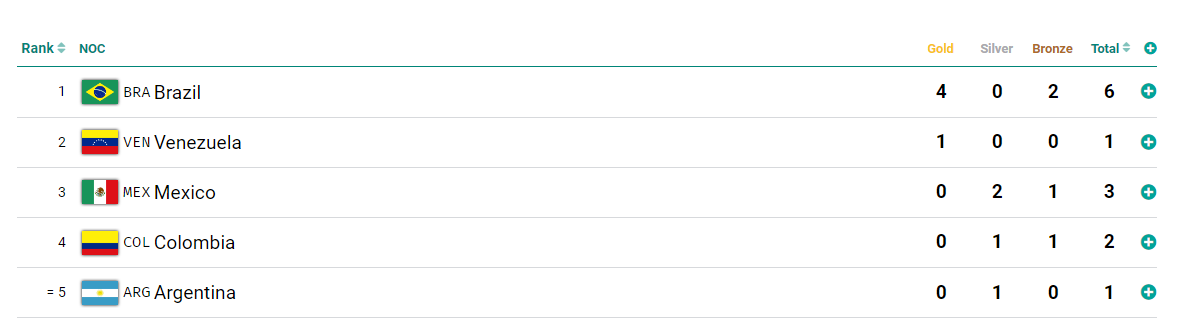 Seis disputas na fase final, seis medalhas, 100% de aproveitamento no primeiro dia do Pan de Santiago. No Dia Mundial do Judô, celebrado em 28 de outubro, o Brasil deixou bem claras todas as credenciais do esporte que é sinônimo de medalha para o país em todos os Jogos Olímpicos desde 1984. Na primeira jornada de lutas no Centro de Esportes de Contato, na capital chilena, os seis brasileiros escalados em cinco categorias subiram ao pódio. Foram quatro ouros e dois bronzes, resultado que deixa o país na liderança isolada do quadro de medalhas da modalidade (veja abaixo).