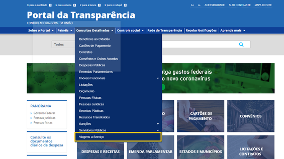 Reprodução de Tela - Portal da Transparência (Seção Viagens a Serviço)