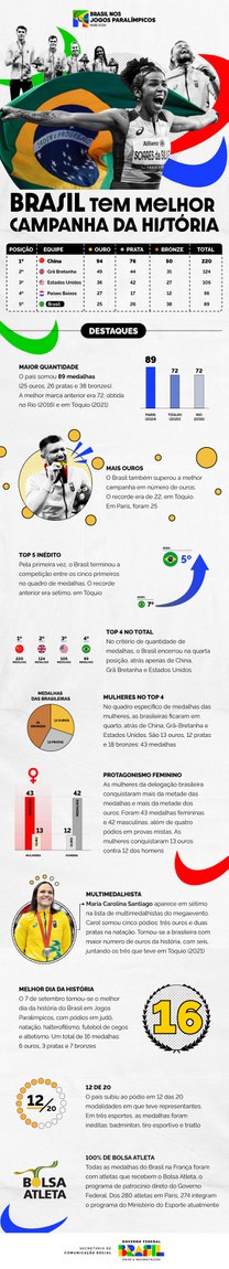 Num 7 de setembro memorável, Brasil alcança melhor campanha da história nos Jogos Paralímpicos