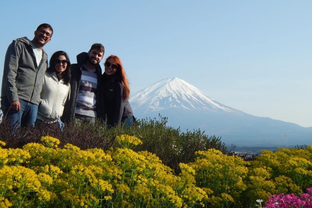 João Paulo e Vanessa (D) com um casal de amigos diante do monte Fuji, no Japão. Têm planos de voltar em breve. Foto: Arquivo pessoal