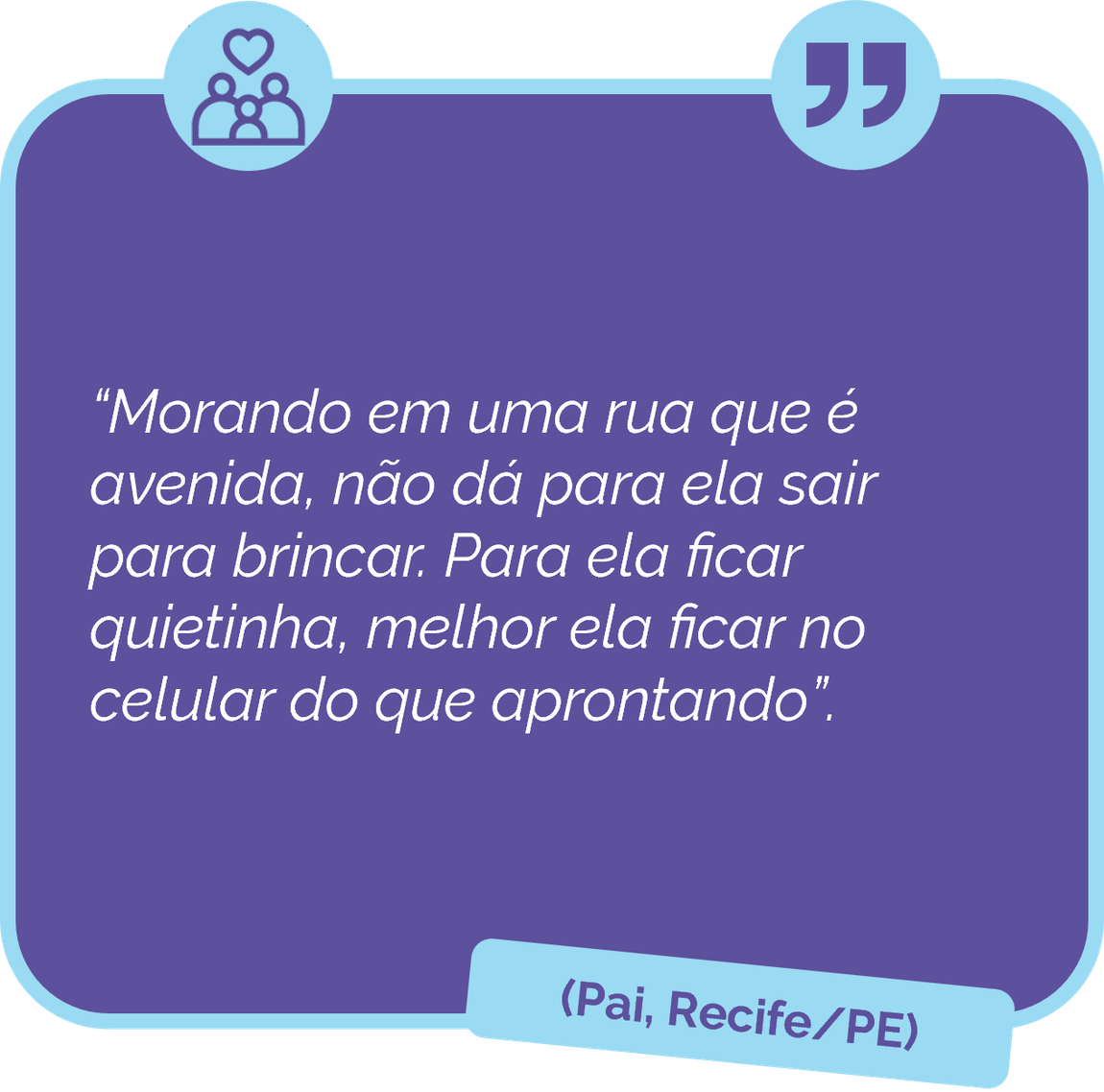 A realidade brasileira conta com muitos arranjos familiares chefiados por mães solo. Além disso, a insuficiência de vagas em creches públicas, o abandono paterno, a falta de rede de apoio e a ausência de espaços verdes seguros para o lazer, entre outros, são fatores que podem contribuir para que se recorra às telas para tornar possível a prática de uma atividade profissional ou do descanso.