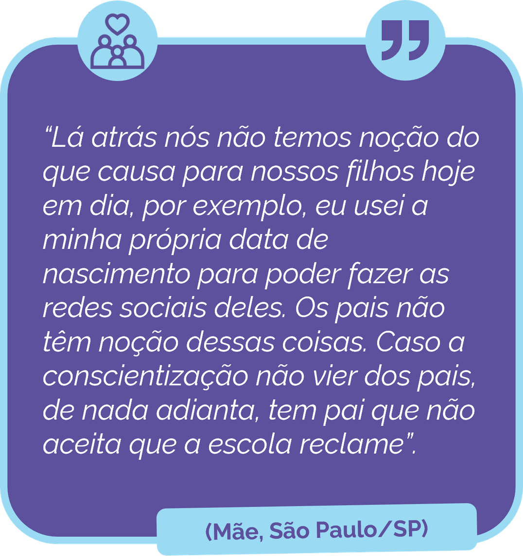 As famílias também têm um importante papel na mediação das crianças e dos adolescentes com o mundo, inclusive com o mundo digital.