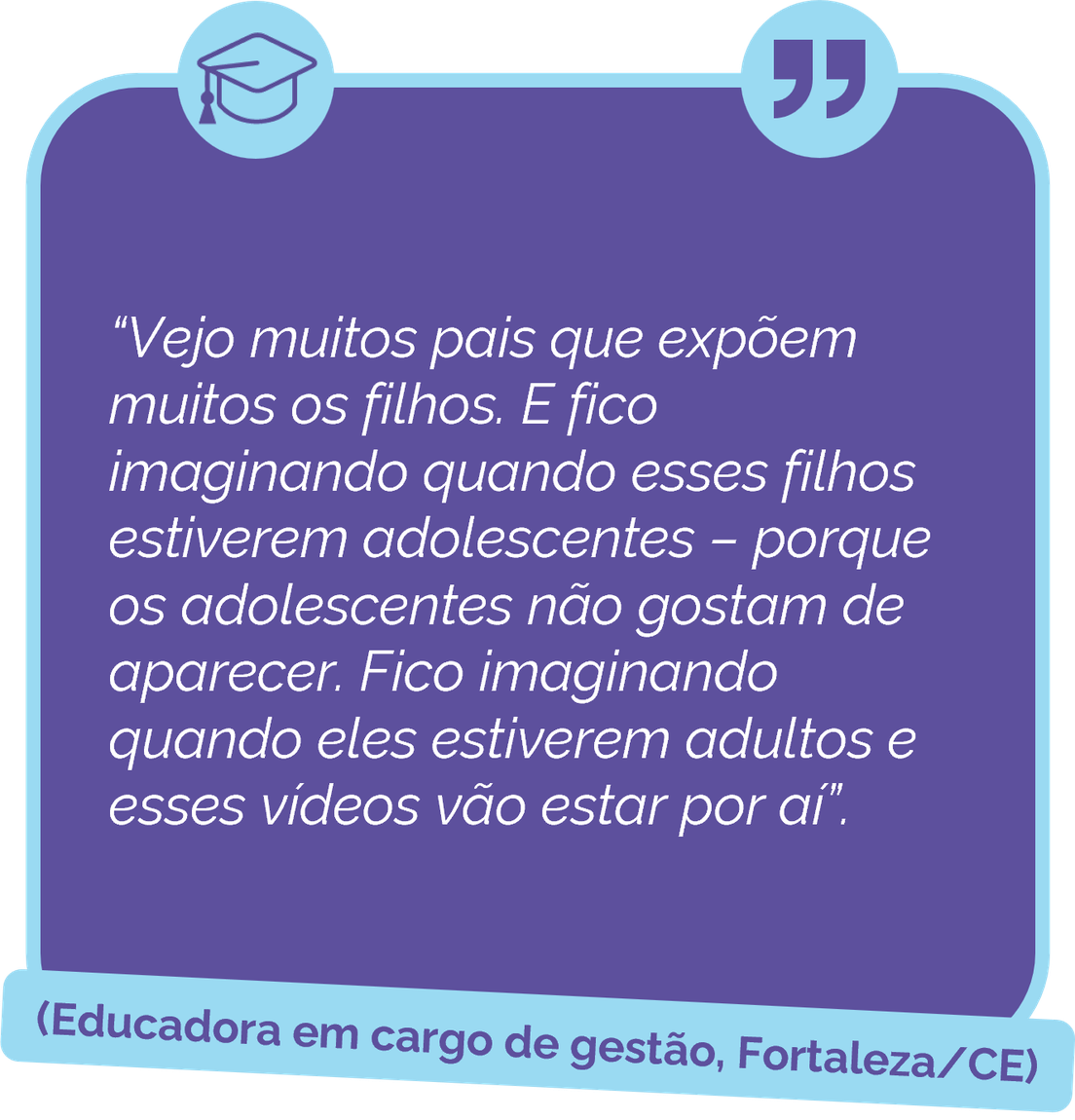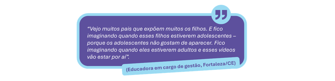 Assim, um desafio adicional se coloca para os processos de mediação familiar: o acompanhamento das experiências em fóruns privados de trocas de mensagens, levando em consideração a possibilidade de exposição a vínculos e conteúdos potencialmente danosos (como a interação com usuários adultos desconhecidos, o acesso a conteúdos extremistas, fraudulentos ou inapropriados), mas também a legitimidade e privacidade das experiências relacionais, em especial para os adolescentes.