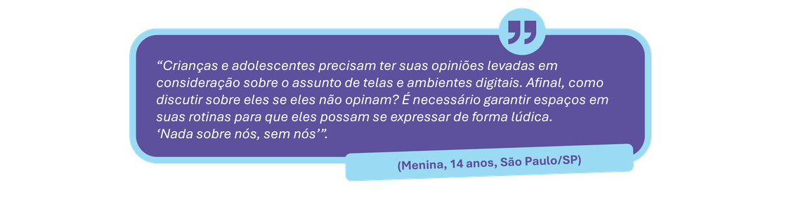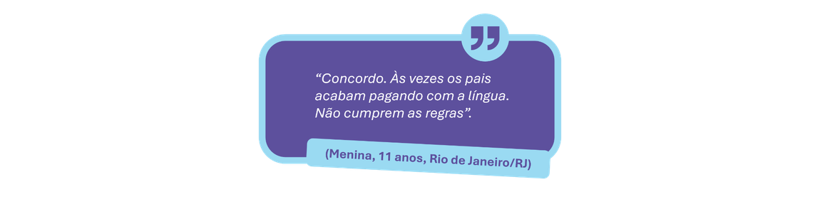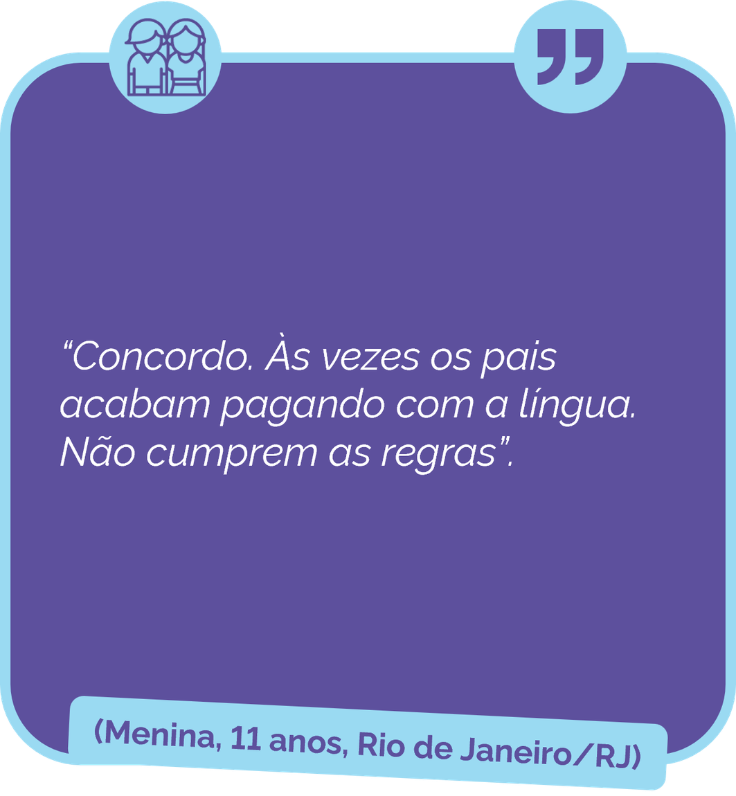 Isso também foi refletido nos relatos de crianças e adolescentes ouvidos para a formulação deste Guia, nos quais a percepção do valor das regras oscila entre as faixas etárias.