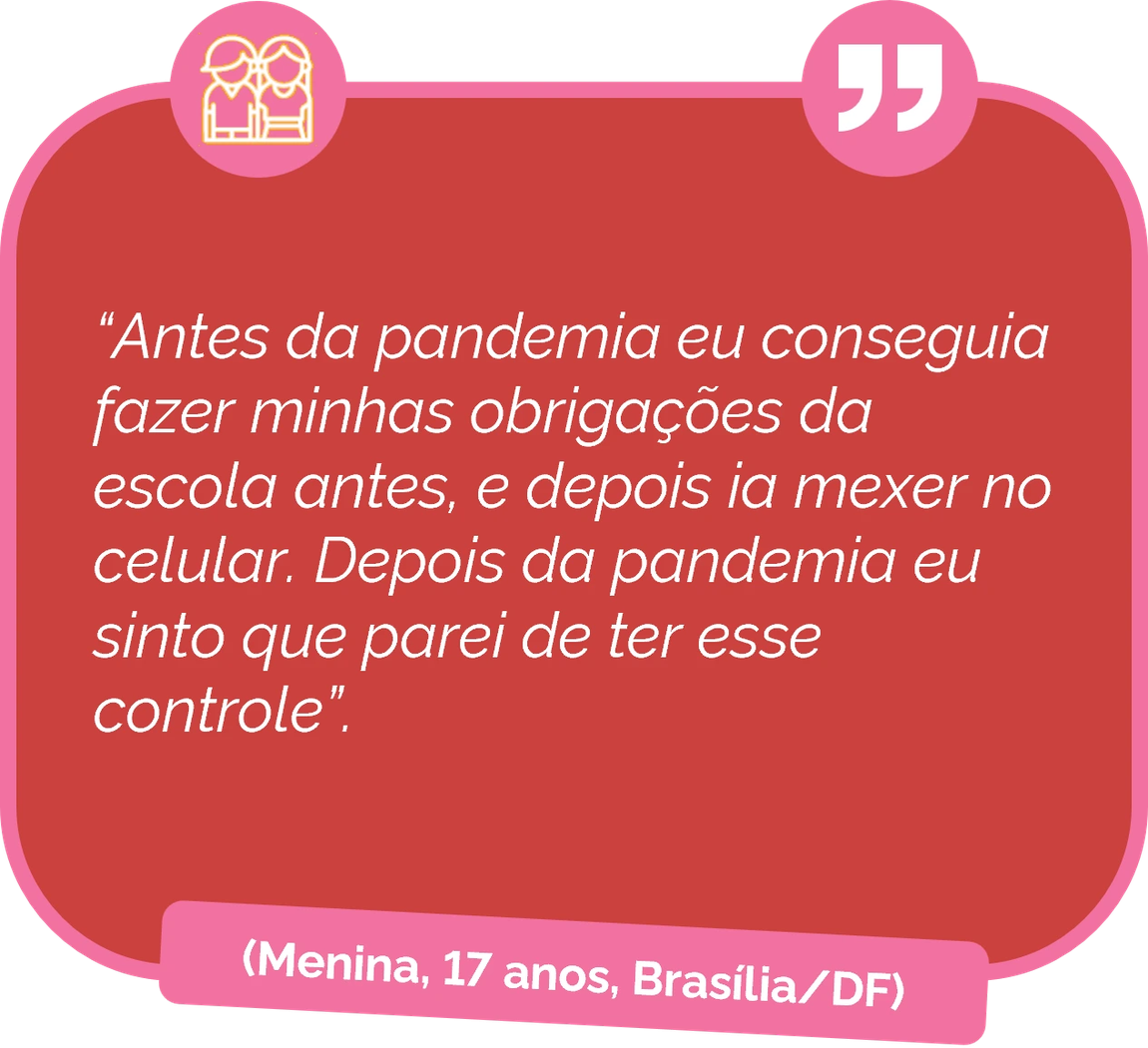 Por exemplo, diante de um contexto de hiperconexão associado às experiências de consumo, entretenimento, educação, convivência social, territórios e vinculação afetiva mediadas pela internet, estudos têm mostrado que, especialmente após a pandemia de Covid-19, as recomendações não são efetivamente adotadas por parte significativa das famílias brasileiras.