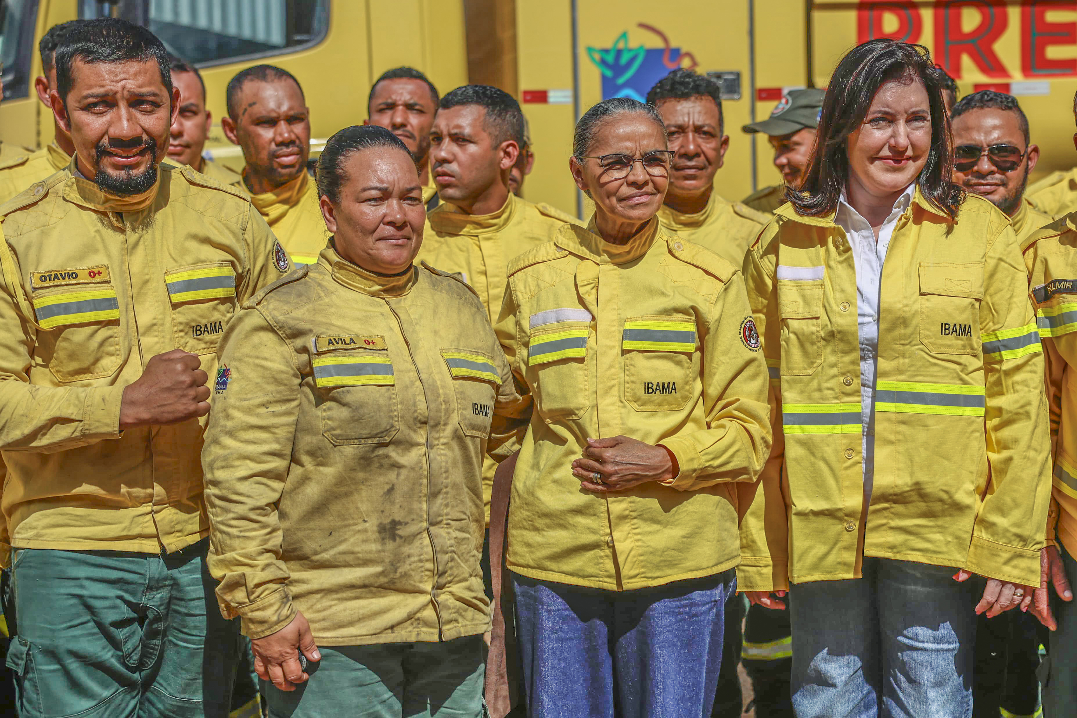A imagem mostra as ministras Marina Silva (MMA) e Simone Tebet (MPO) em visita a Corumbá (MS), município que concentra a maioria dos incêndios no Pantanal (Foto: Marcelo Camargo/Agência Brasil)
