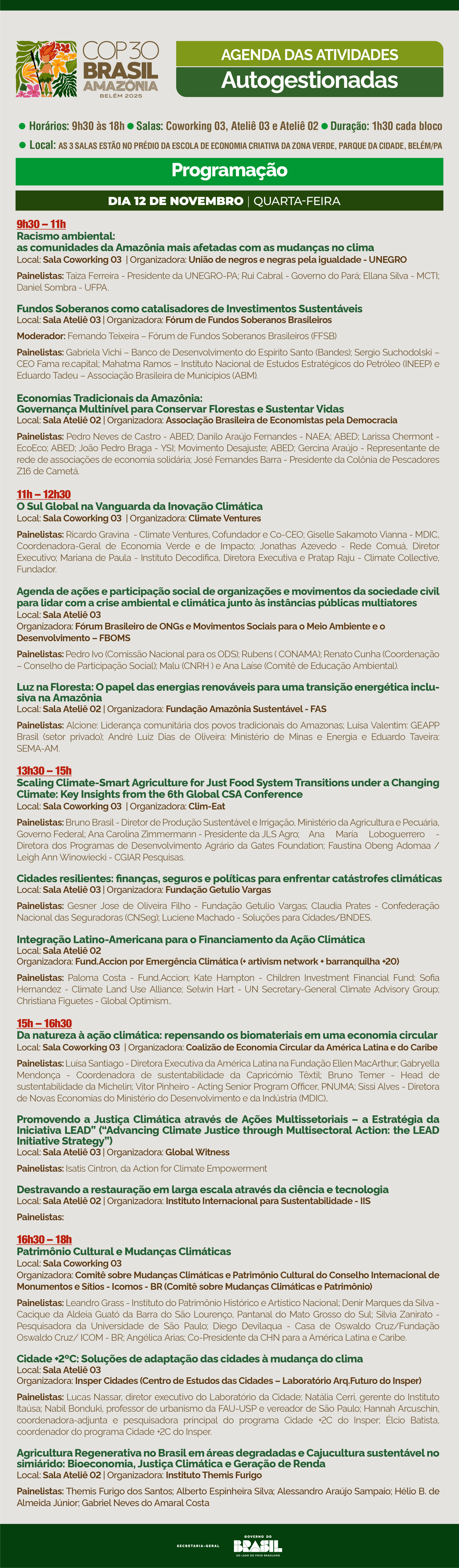 COP30 | Atividades Autogestionadas | DIA 3 - 12 NOV