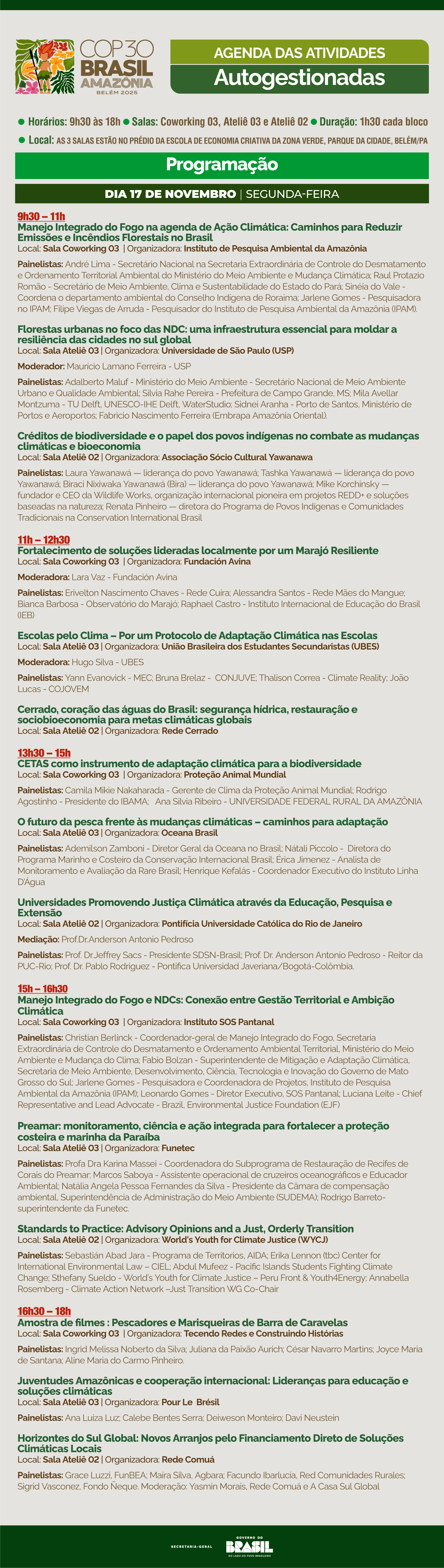 COP30 | Atividades Autogestionadas | DIA 7 - 17 NOV