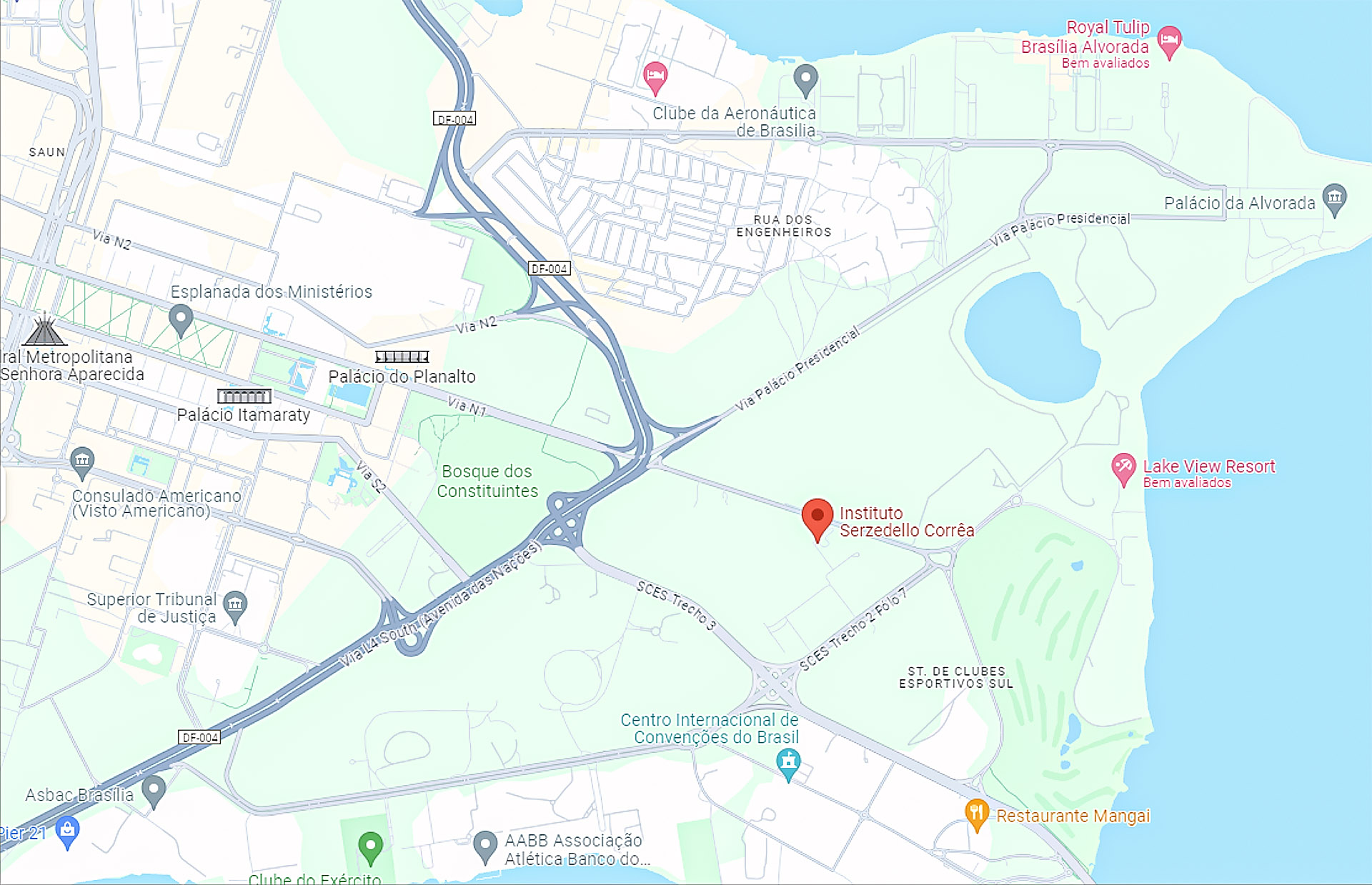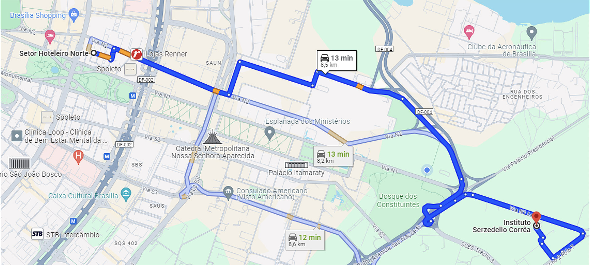Imagem: Representação de percurso do Setor Hoteleiro Norte (SHN) para o Instituto Serzedello Corrêa - ISC