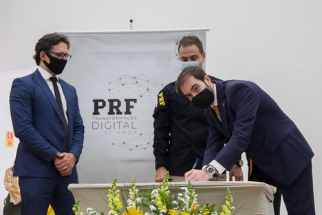 O diretor-geral da PRF, Eduardo Aggio de Sá, fez questão de destacar que está em curso uma profunda transformação digital no órgão para garantir segurança pública e mobilidade no Brasil. Juntamente com o Secretário Especial de Modernização do Estado, José Ricardo de Freitas Martins da Veiga, e o Secretário de Governo Digital, Luis Felipe Monteiro, foi assinado o Plano de Transformação Digital da PRF.