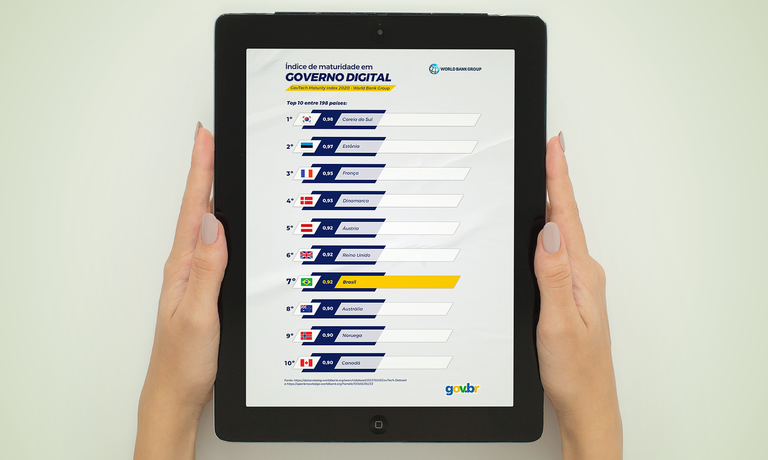 O Brasil está entre os sete países do mundo com maior maturidade digital. A classificação consta do GovTech Maturity Index 2020, ranking divulgado pelo Banco Mundial que avalia a transformação digital do serviço público em 198 países.