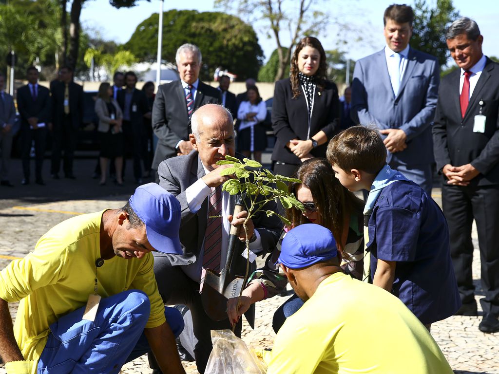 A cerimônia foi marcada, principalmente, pelo plantio simbólico das últimas unidades das 300 mudas destinadas ao Palácio do Planalto.