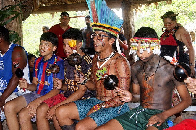 Homens, mulheres e crianças das 42 aldeias receberam a comitiva de autoridades dos governos federal e estadual com festa e dança de boas-vindas. O ritual emocionou em particular Sílvia Rucks, coordenadora da Organização das Nações Unidas (ONU) no Brasil, que, numa agenda em Belém, foi de surpresa ao encontro.