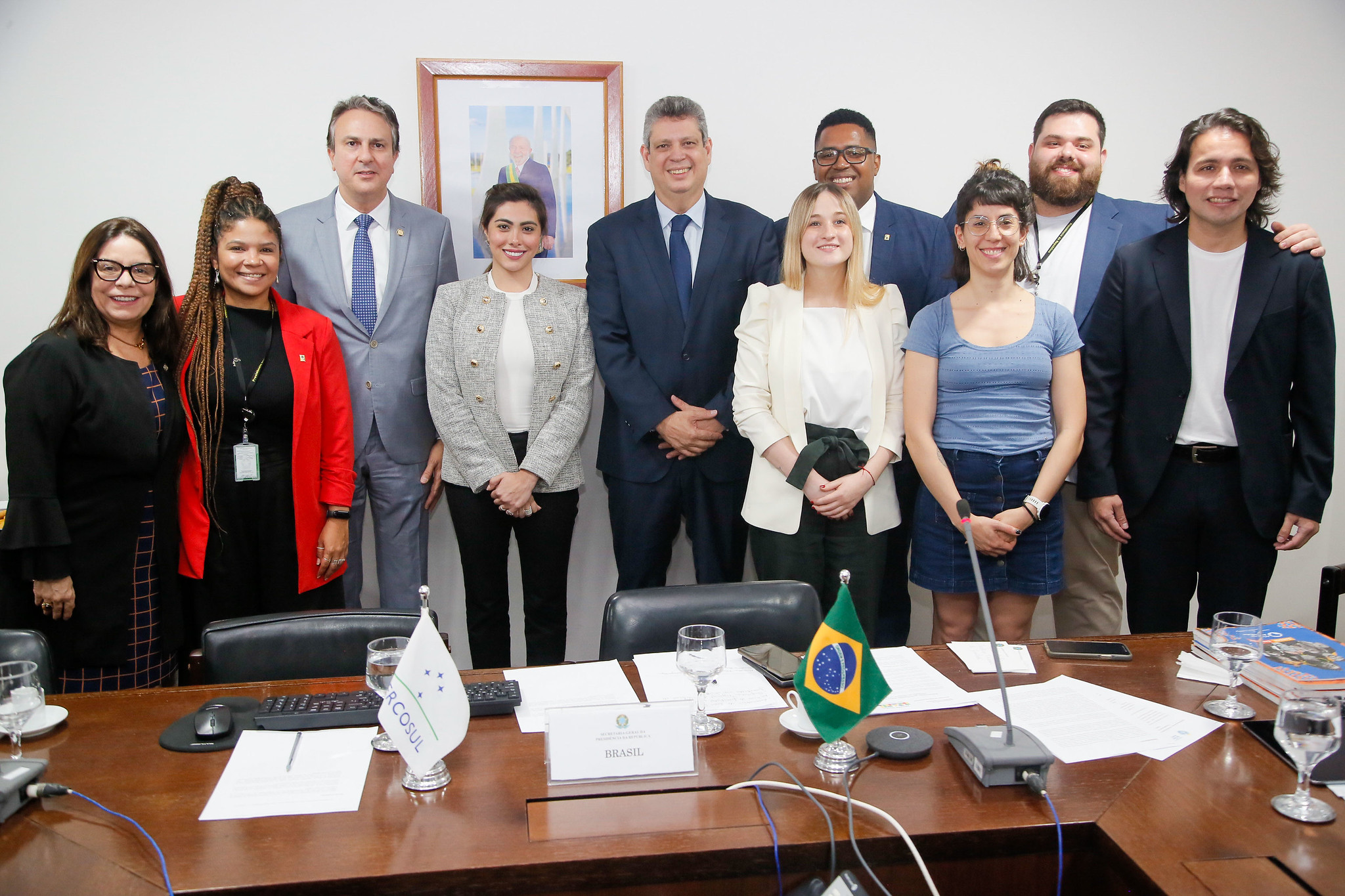 - Ministro da Secretaria-Geral da Presidência, Márcio Macêdo, ministro da Educação, Camilo Santana, com representantes dos países do Mercosul, da Secretaria Nacional de Juventude, do Conselho Nacional de Juventude e do Organismo Internacional de Juventude para a Ibero-américa