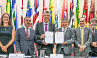 No ato, ministro e prefeita Marília Campos assinaram termo para desenvolvimento e aprimoramento da Plataforma Decide Contagem