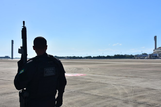 Brasília/DF, 28/06/2023 - Policiais Penais Federais realizaram, nesta terça(27) e quarta(28), a transferência de 13 presos do sistema penitenciário do Rio de Janeiro para unidades prisionais do Sistema Penitenciário Federal (SPF), onde ficarão em celas individuais e sob rigorosos procedimentos de segurança.