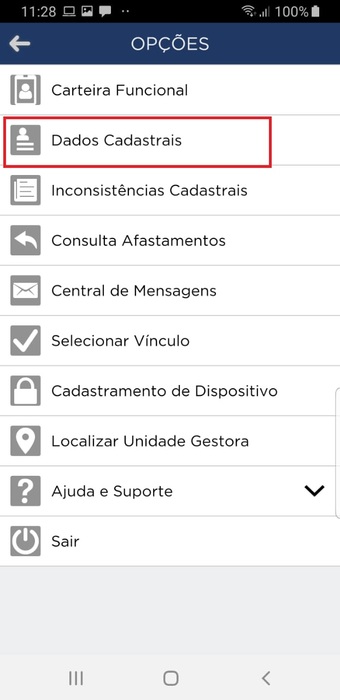 2.2. Selecionar a opção “Dados Cadastrais”: