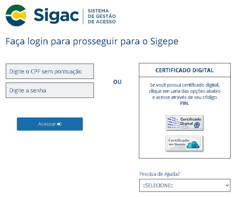 Realize o acesso com login (CPF) e senha no Sistema de Gestão de Acesso (Sigac)