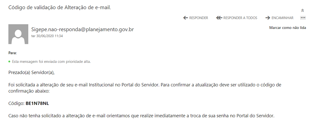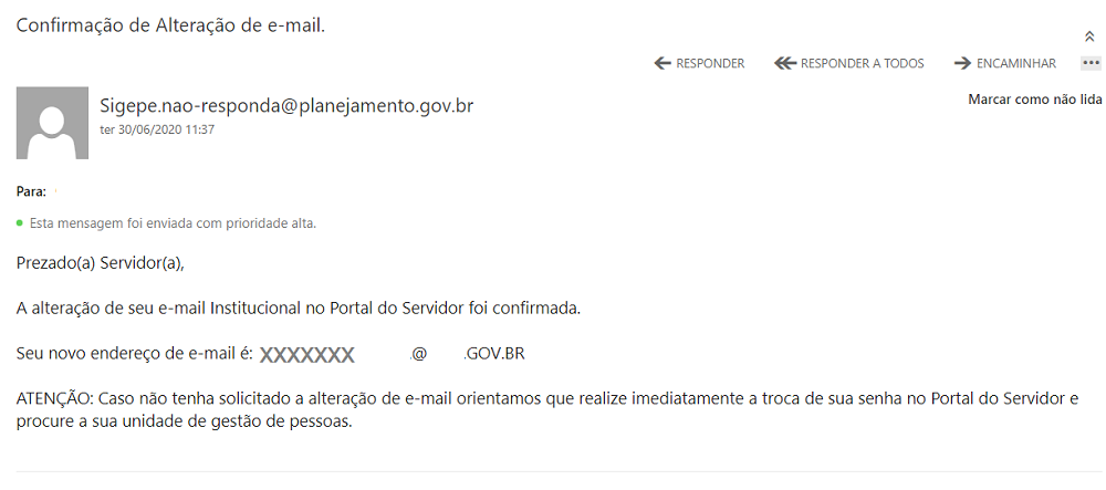 2.9. Você receberá um e-mail com o assunto “Confirmação da Alteração do e-mail”:
