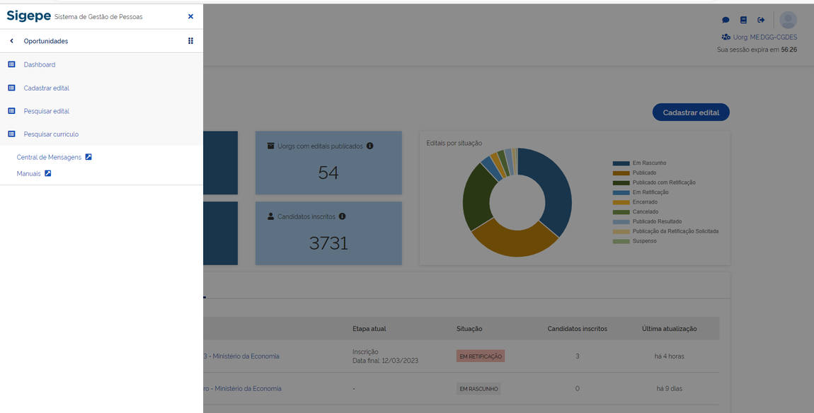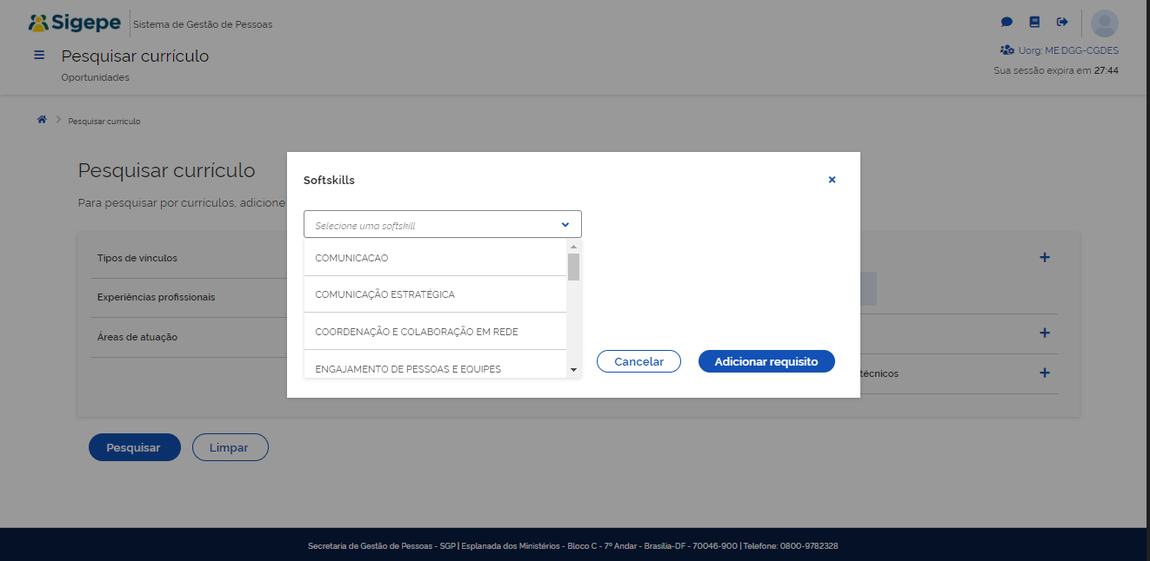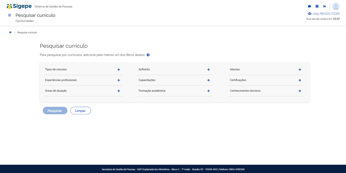 Sobre intercorrências no Currículo e Oportunidades ou no Sigepe Oportunidades, registre seu chamado na Central Sipec ou 0800 979 9009.