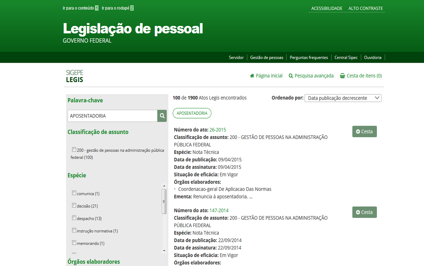 Legislação de Pessoal