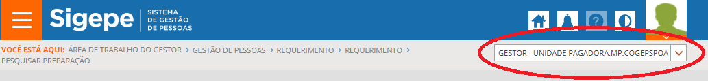 Você poderá verificar a habilitação ativa no momento do uso do sistema pelo Cabeçalho do Sigepe: