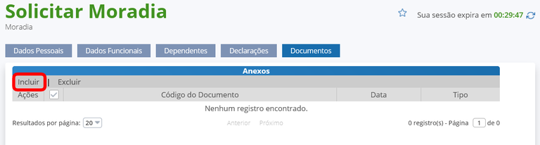 Para incluir um novo documento, clique novamente em incluir. Ao final clique em Solicitar.