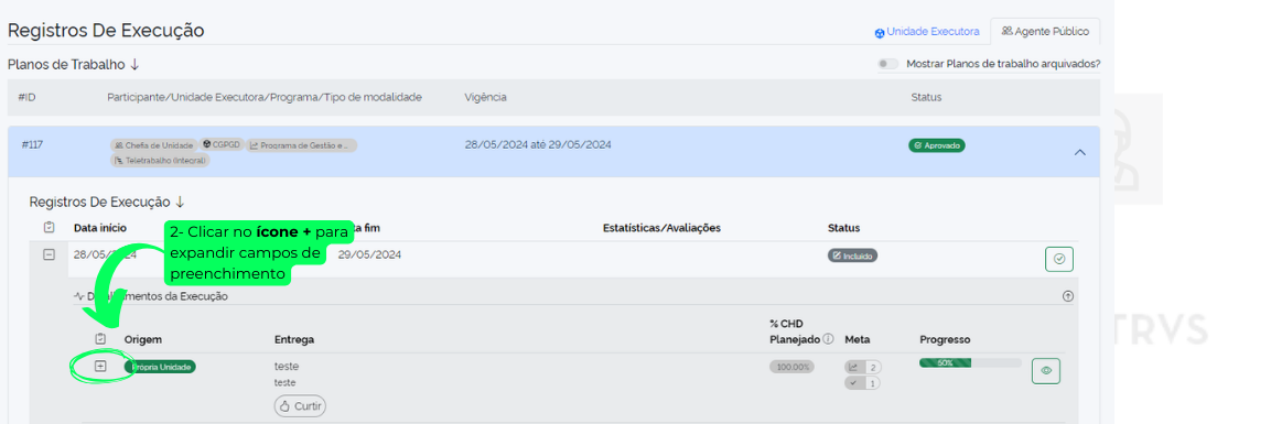 A situação trivial e recomendada é que o participante inclua o plano de trabalho na sua unidade de lotação e que registre neste a contribuição para entregas de outras unidades. No entanto, é possível, também que o participante pactue um plano de trabalho numa unidade diferente da sua unidade de lotação, desde que esteja a ela vinculado e que esta unidade esteja submeta ao mesmo Regramento Institucional que a unidade de lotação do participante. Segue abaixo esquema que ilustra as possíveis situações de pactuação de planos de trabalho.