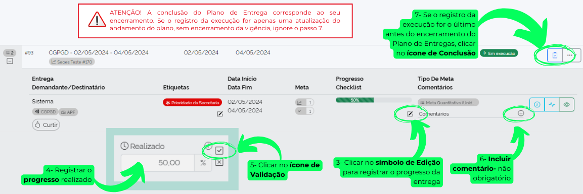 Registro de ocorrências durante a execução do plano de trabalho