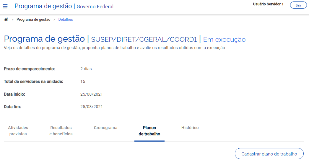 Registro no SISREF sobre a participação no PGD