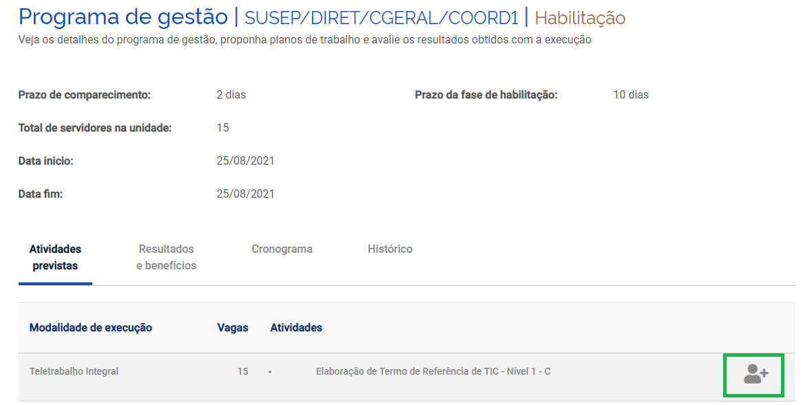 Registro no SISREF sobre a participação no PGD