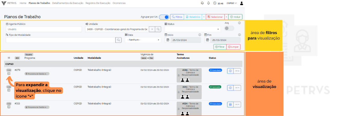 Deve ficar claro que o uso do sistema demanda conhecimento básico dos conceitos do PGD, especialmente aqueles referentes a “planos de entrega”. Seria importante ter familiaridade com os normativos, mas é mais compreensível que as áreas finalísticas não tenham acompanhado a evolução do Decreto nº 11.072 e as duas instruções normativas subsequentes. Isso significa, portanto, que somente na implementação do novo sistema que a maioria das chefias e participantes se confrontará com a nova realidade.