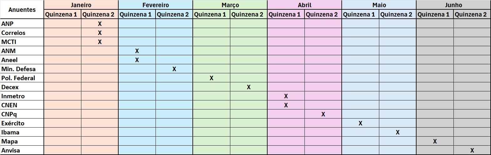 Cronograma de adesão dos anuentes ao Portal Único de Comércio Exterior em janeiro de 2025