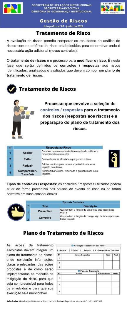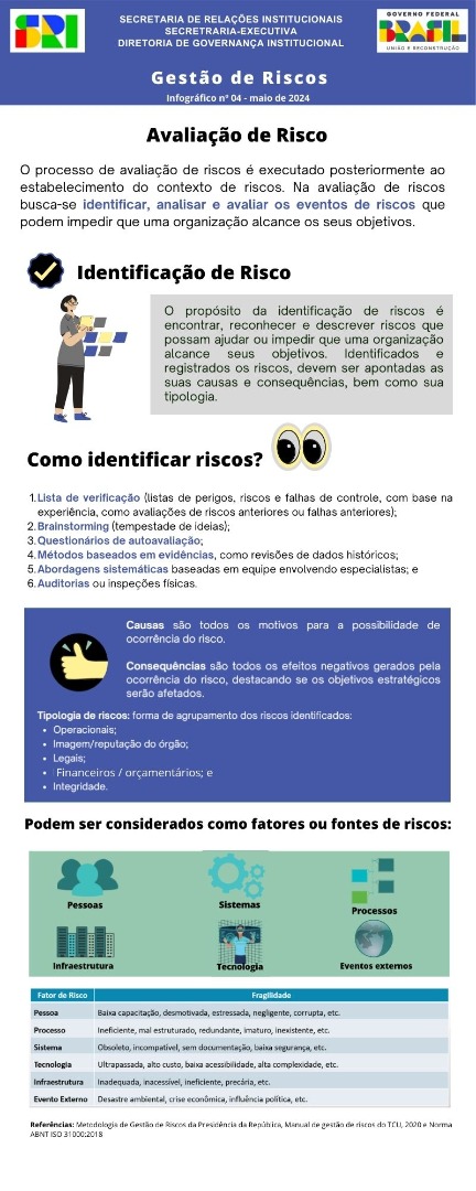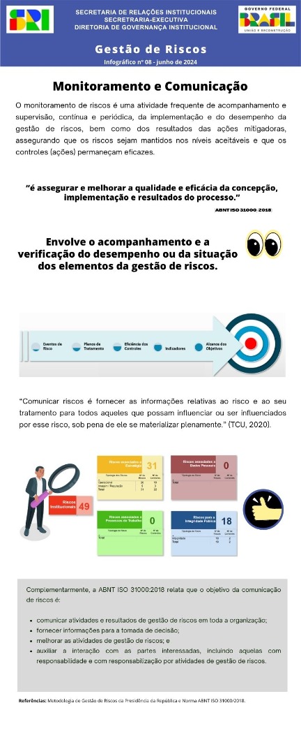 A Secretaria de Relações Institucionais da Presidência da República – SRI, por meio de sua Diretoria de Governança Institucional – DGOVI/SE, disponibilizara para conhecimento, informações relacionadas à Governança Pública e suas práticas, como uma forma de orientar e aprimorar o desenvolvimento de seus (suas) agentes públicos (as) e de exercitar a boa Governança.