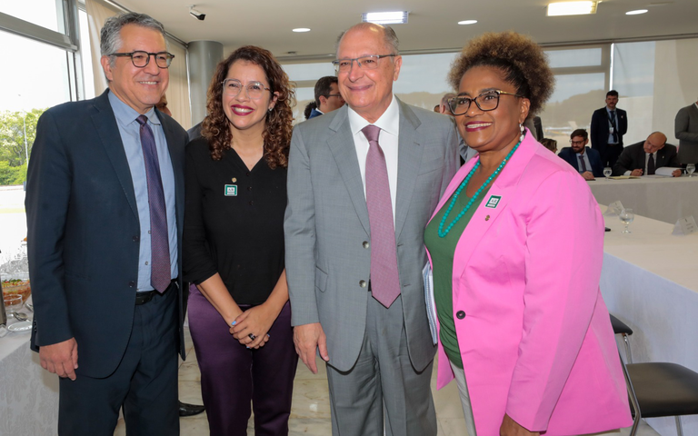 Ministro da Secretaria de Relações Institucionais, Alexandre Padilha, Vice-Presidente, Geraldo Alckmin, e as Deputadas Denise Pessôa e Reginete Bispo do PT/RS. - Foto: Gil Ferreira
