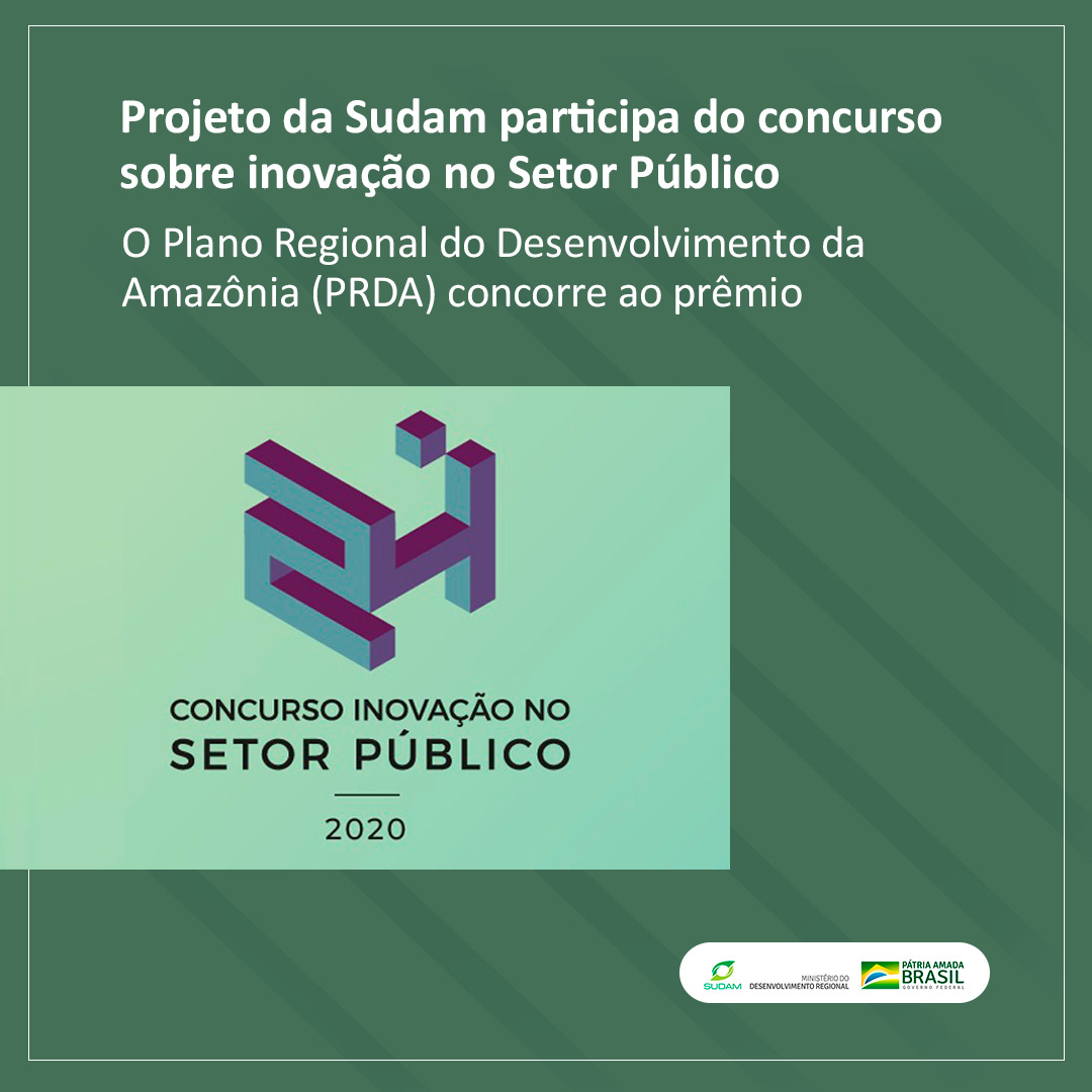 O Plano Regional do Desenvolvimento da Amazônia (PRDA), elaborado pela Superintendência do Desenvolvimento da Amazônia (Sudam), foi considerado validado no 24º Concurso Inovação no Setor Público.