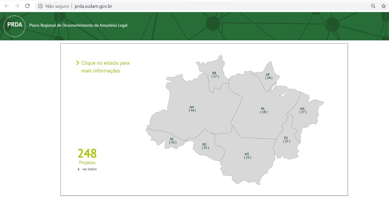 O sistema detalha os projetos do PRDA na Amazônia, destacando os recursos financeiros envolvidos, população beneficiada, montante já repassado, etapas do projeto e acesso à íntegra. Qualquer cidadão pode navegar, acessando: http://prda.sudam.gov.br