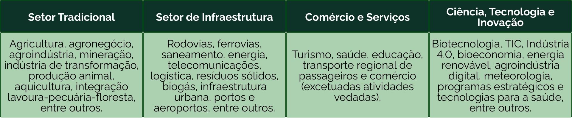 Os projetos devem se enquadrar nas prioridades definidas pela Resolução de Diretrizes e Prioridades do FDCO (Resolução Condel/Sudeco nº 166, de 29 de julho de 2025), abrangendo os seguintes setores: