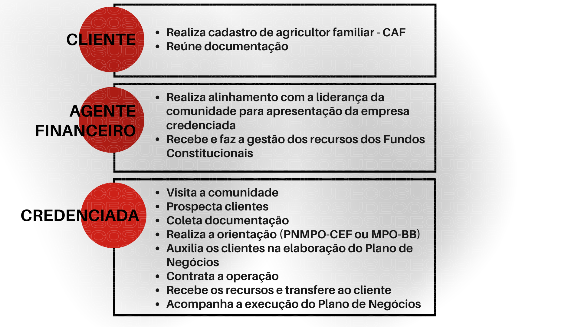 - Após essa etapa, o cadastro do solicitante é analisado e, não havendo pendências, a contratação da linha de crédito é liberada.