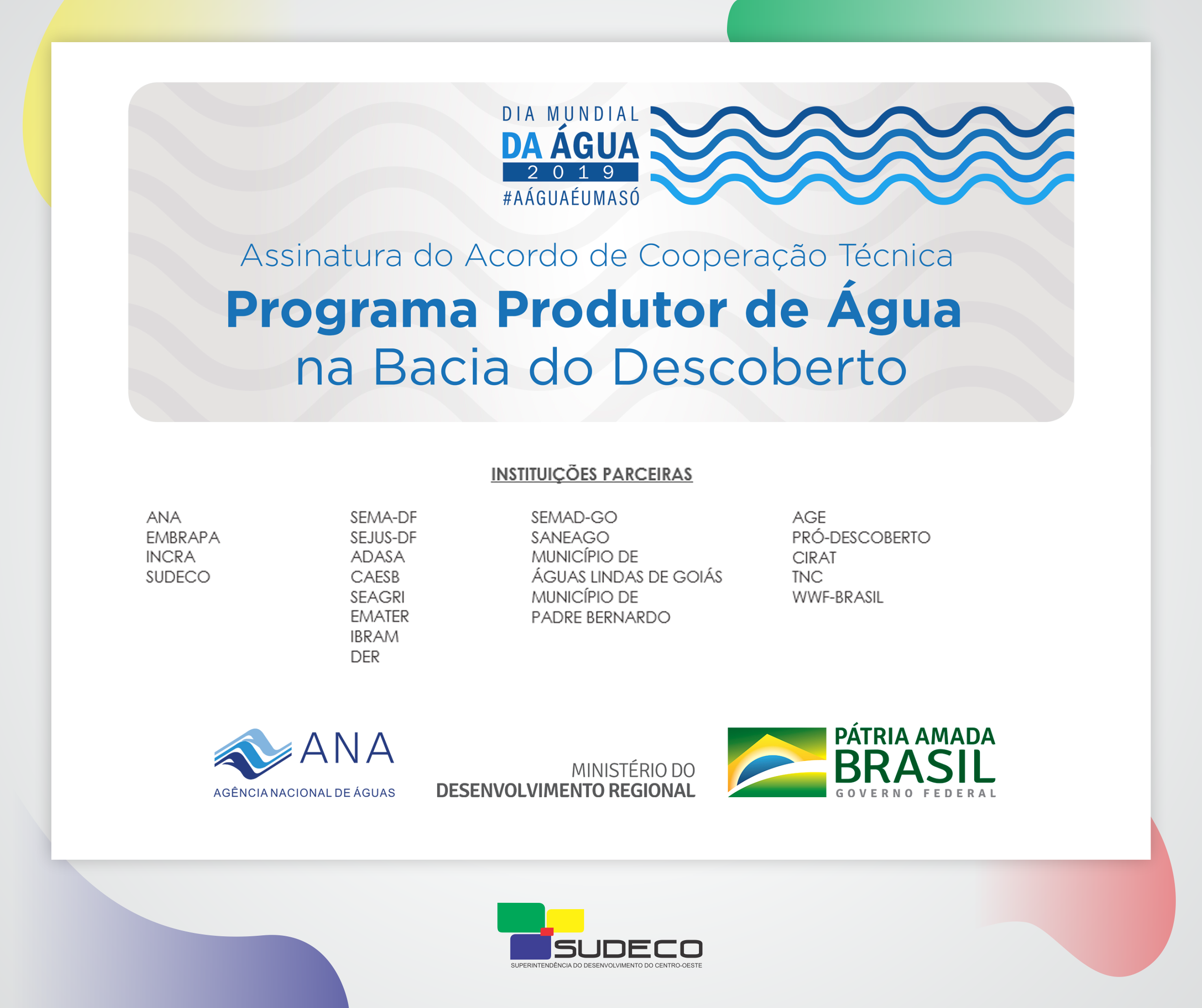 Na manhã desta sexta-feira (22), às 10h, a Superintendência do Desenvolvimento do Centro-Oeste (Sudeco) e a Agência Nacional de Águas (ANA) vão assinar um Acordo de Cooperação Técnica relacionado ao Programa Produtor de Água na Bacia do Descoberto. A assinatura vai acontecer na Barragem do Descoberto, no município de Águas Lindas de Goiás.