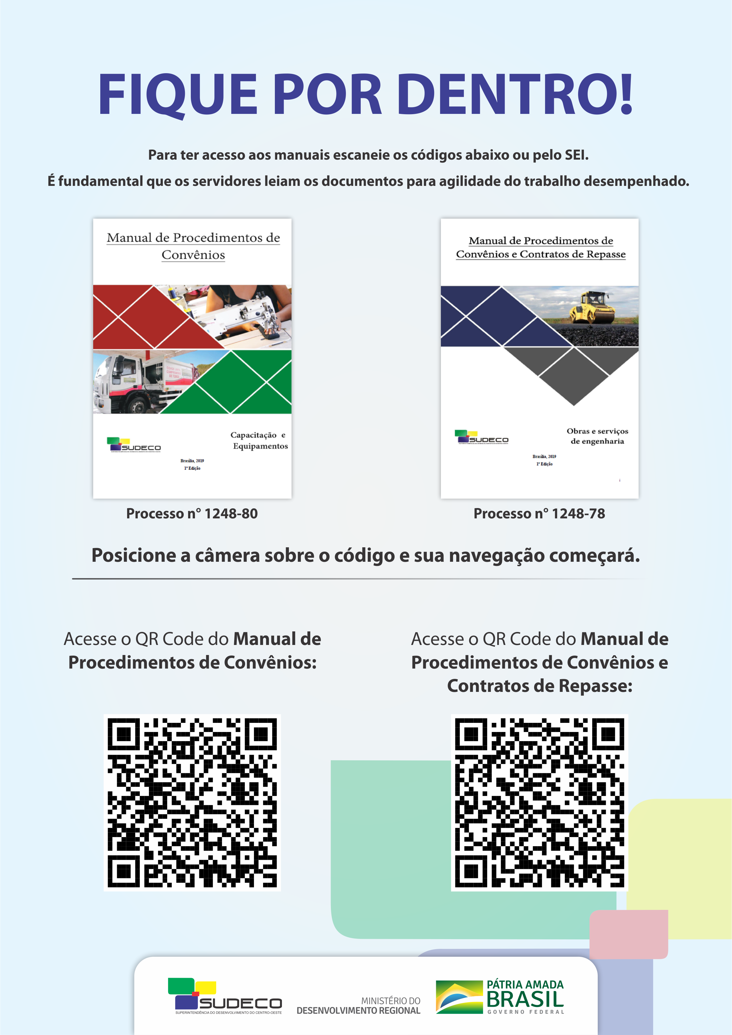 Para facilitar o acesso aos manuais o designer da Coordenação de Comunicação Social da Sudeco, Raí Vitorino, criou um QR Code para cada manual para serem acessados pela câmera de smartphones e tablets.