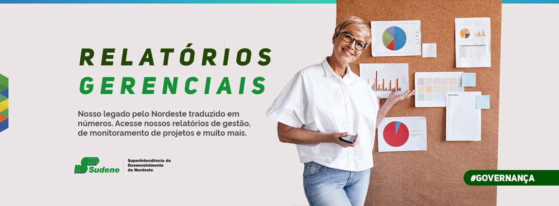 Os relatórios de gestão tem o objetivo principal é oferecer uma visão clara para a sociedade sobre como a estratégia, a governança, o desempenho e as perspectivas da Sudene.