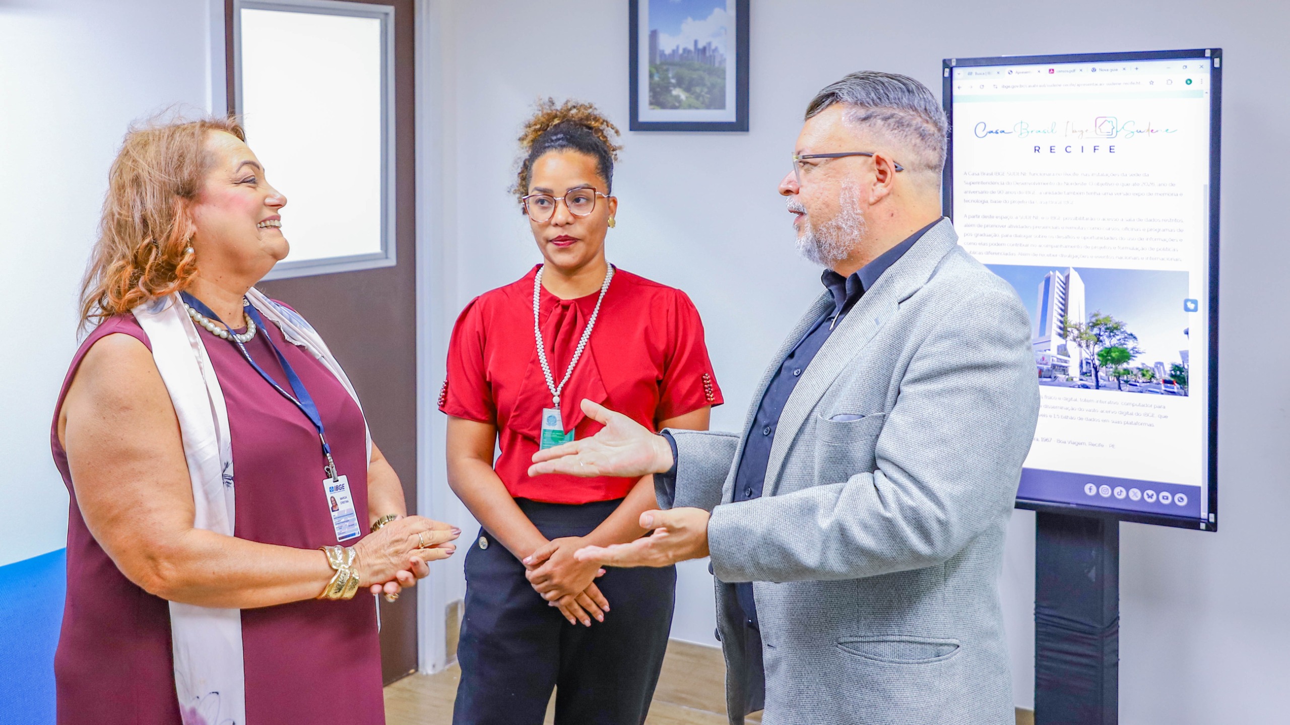 Pela manhã, a Casa Brasil IBGE Sudene recebeu a visita de Antônio de Moura, gerente em exercício da Biblioteca Pública do Estado de Pernambuco. Na ocasião, o gestor discutiu a perspectiva de construir, em parceria com a Casa Brasil, ações culturais e formacionais no Recife e também no interior do estado.