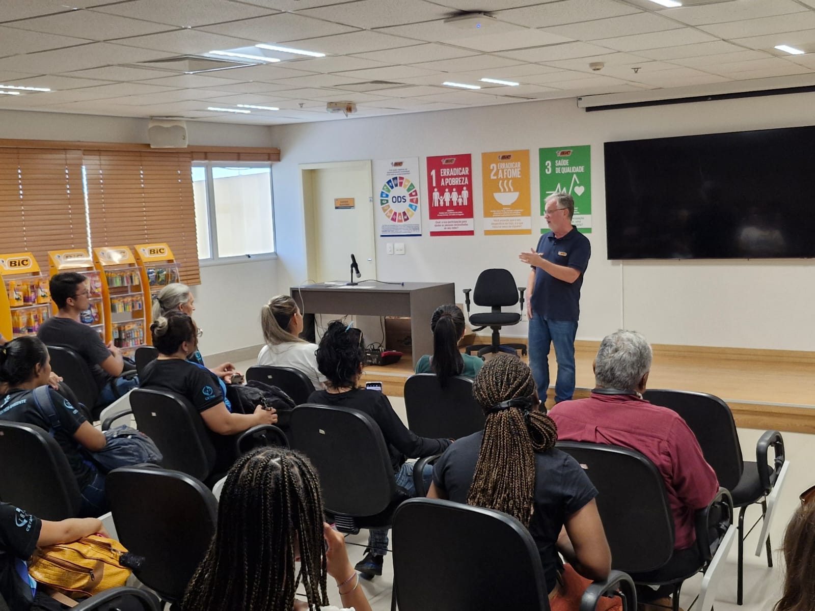 Visita realizada à fábrica da BIC no Polo Industrial de Manaus (PIM), realizada no dia 25 de julho de 2024 por um grupo de seis acadêmicos franceses em intercâmbio na capital amazonense, que se juntaram a uma comitiva de alunos finalistas do curso técnico em Meio Ambiente do Cetam - Crédito: Divulgação/BIC - Livre para divulgação, desde que citada a fonte.
