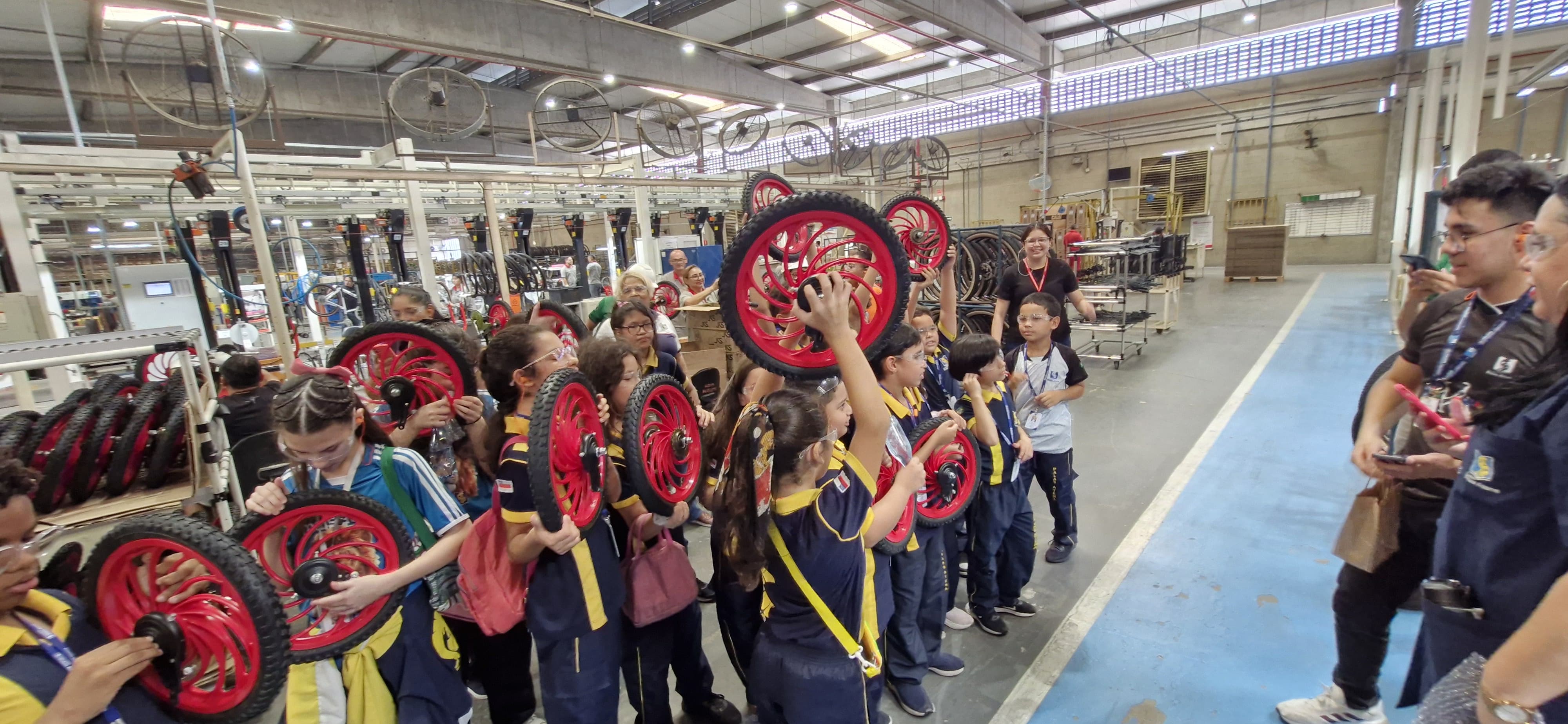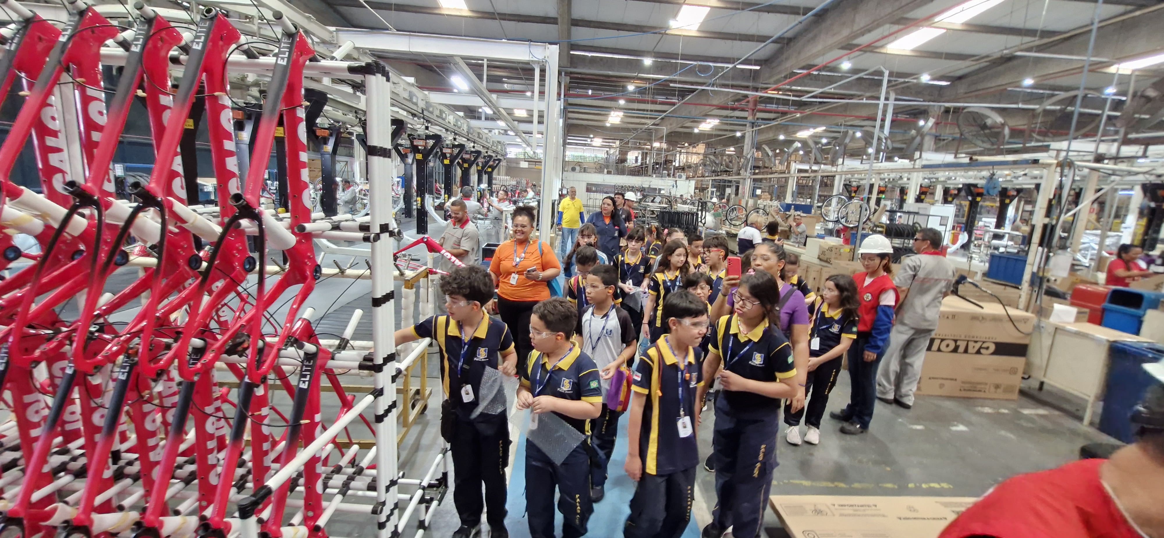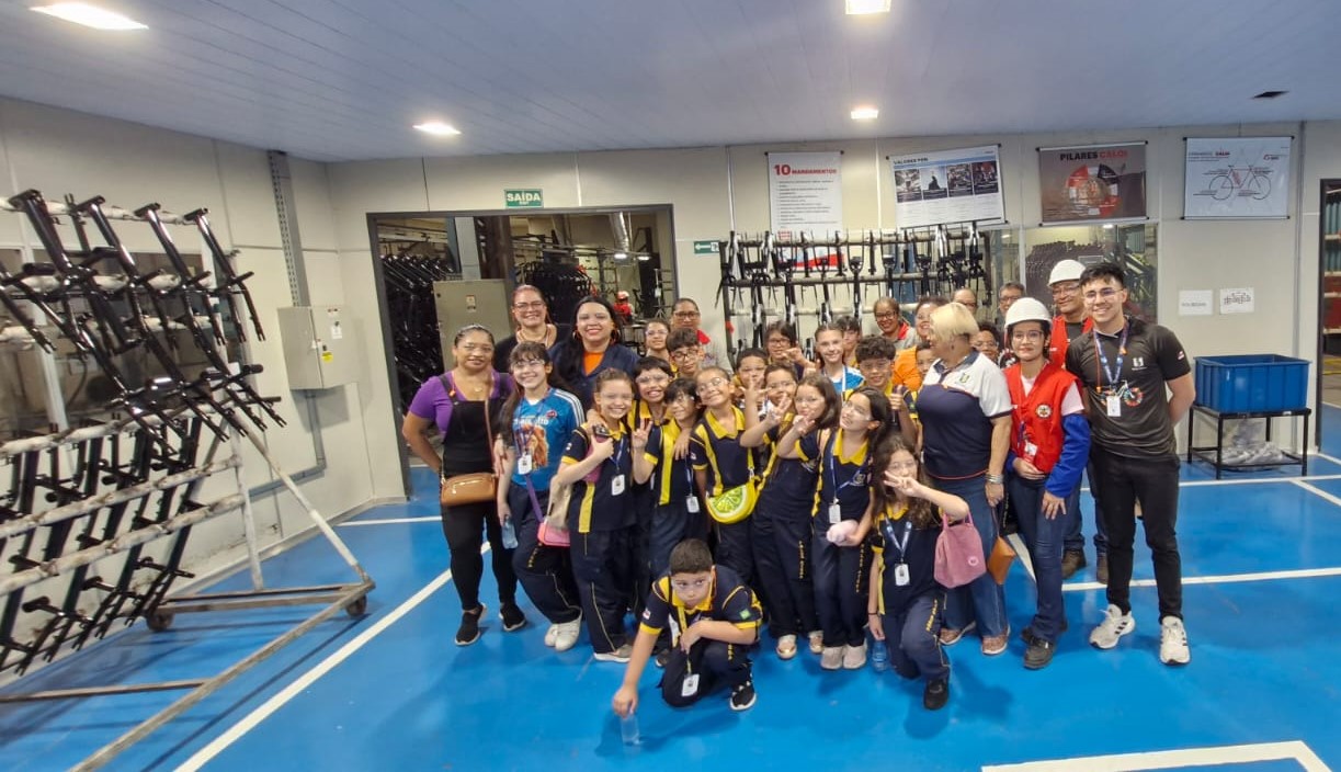 Visita realizada às instalações da Caloi, realizada no dia 30 de outubro de 2024 por um grupo de 19 alunos e cinco professores do Ensino Fundamental do Colégio Palas Atena - Crédito: Divulgação/Suframa - Livre para divulgação, desde que citada a fonte.