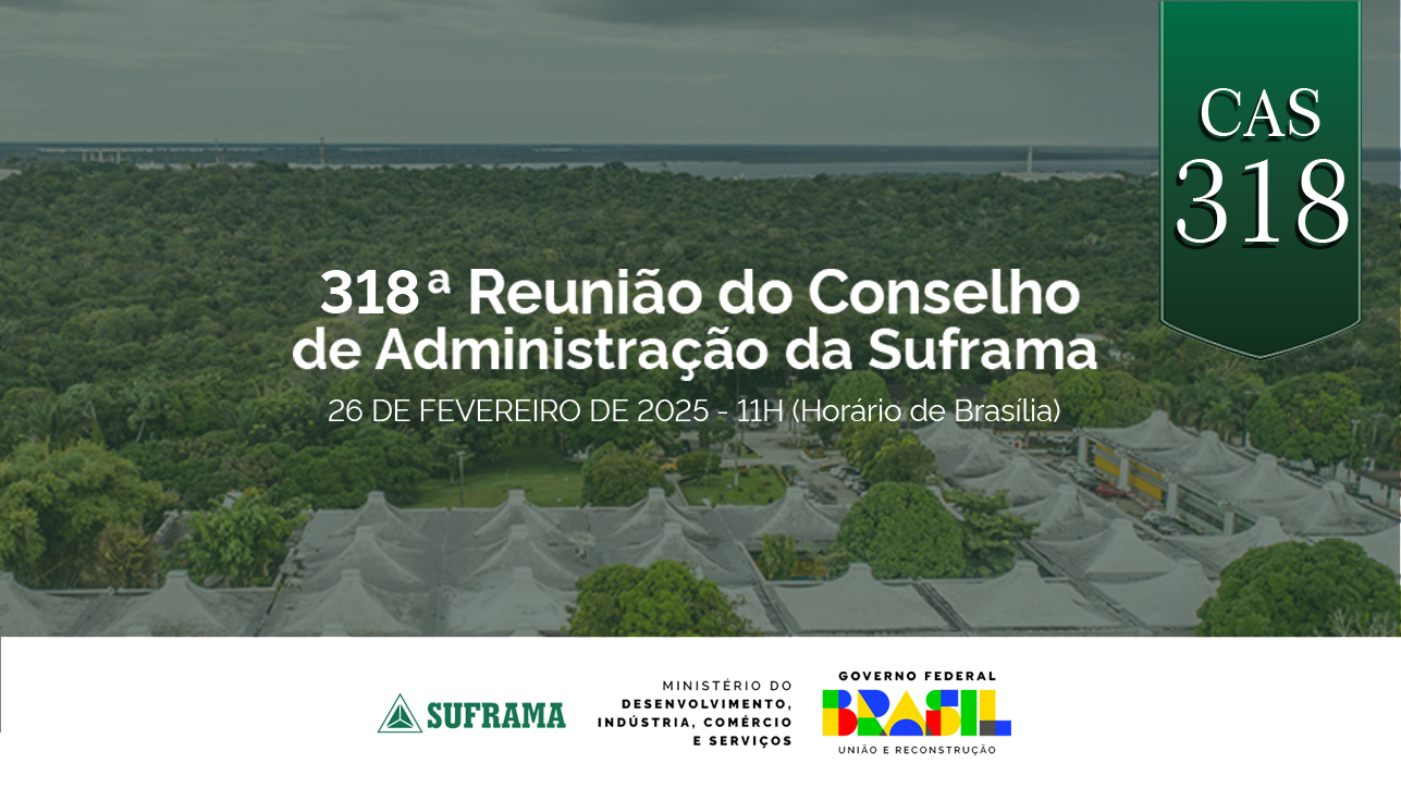 A primeira reunião de 2025 do Conselho de Administração da Suframa (CAS) acontece na quarta-feira (26), às 11h (horário de Brasília), por meio de videoconferência, e celebra os 58 anos da Zona Franca de Manaus (ZFM) e da Suframa.